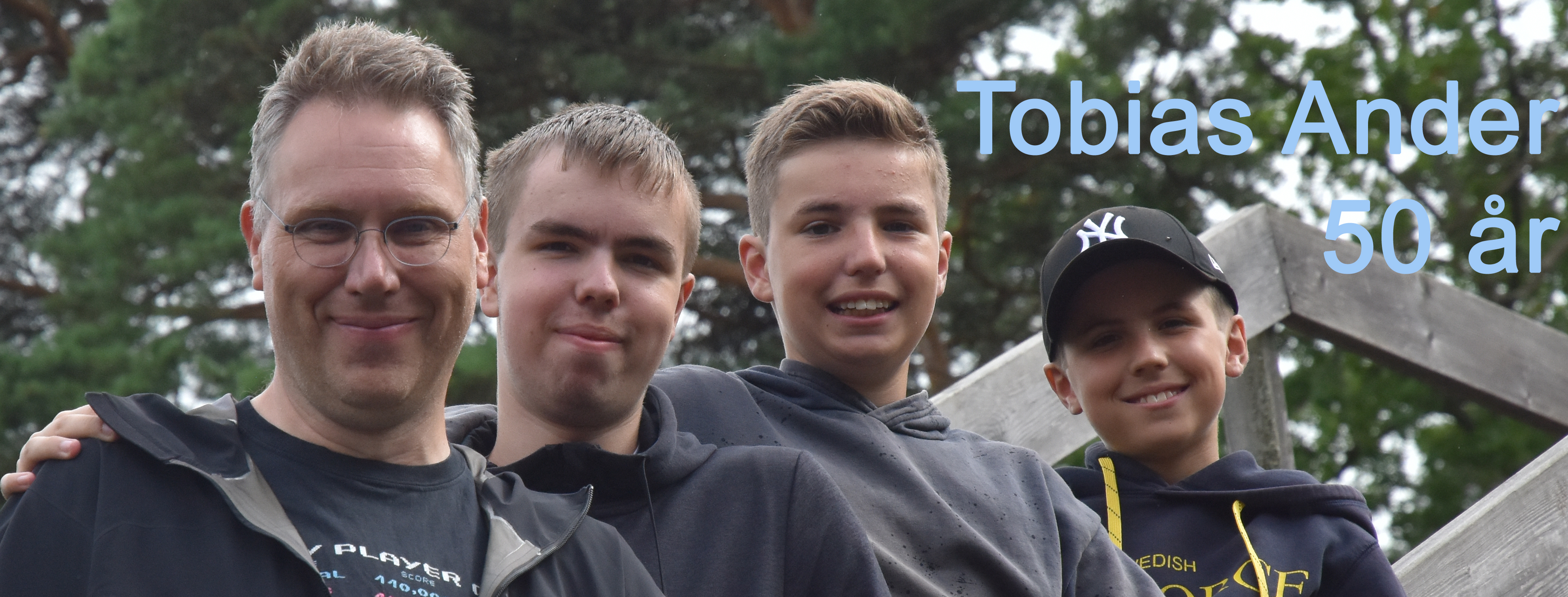 Den 31:a mars 1975 föddes Tobias och det ska firas! Det är mycket roligare med kalas i sommarskrud än i töslask så därför kommer födelsedagen att firas den 14:e juni 2025 (14:00 - sent) hemma hos oss utanför Fjugesta (se kartsidan för vägbeskrivning).
